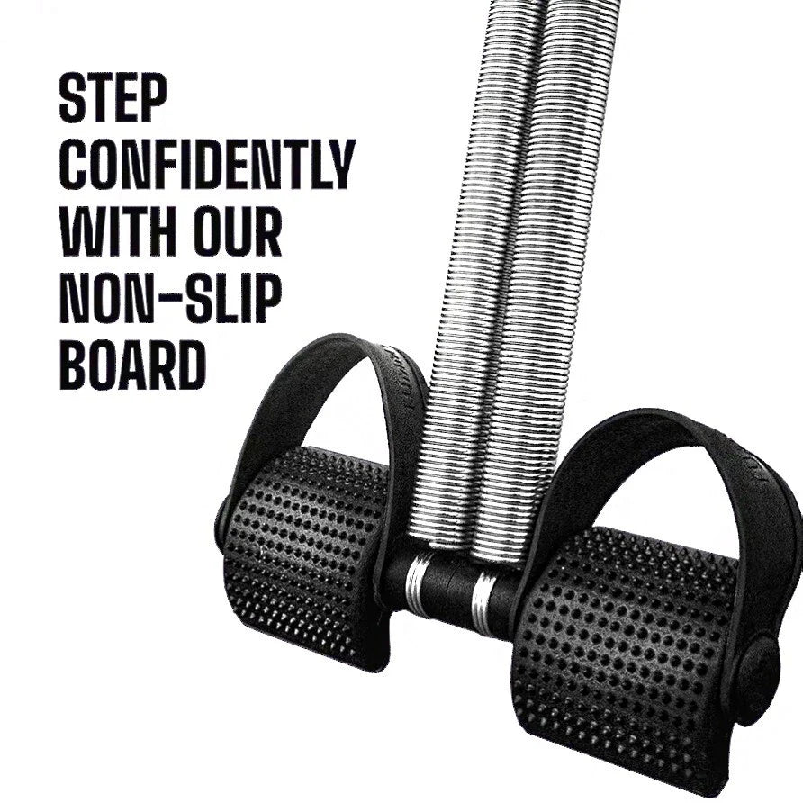 - Start by placing the feet into the accompanying pedals of the contoured foot. Reach down to keep the handle grips tightly and straighten out the respective handles and pedals with both your hands and feet. The third stage involves holding your legs straight and raising the handle bars up to your shoulders and then releasing the grip and continuing this procedure for fast and successful results for around 20-30 minutes a day.